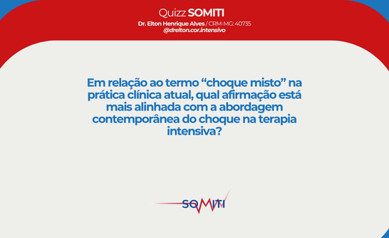 - C) Incorreta. A combinação de choque séptico com componente cardiogênico é frequente, mas a abordagem moderna recomenda especificar o fenótipo, por exemplo: “choque vasoplégico predominante com componente cardiogênico por SICM”, em vez de usar apenas o rótulo amplo “choque misto”.